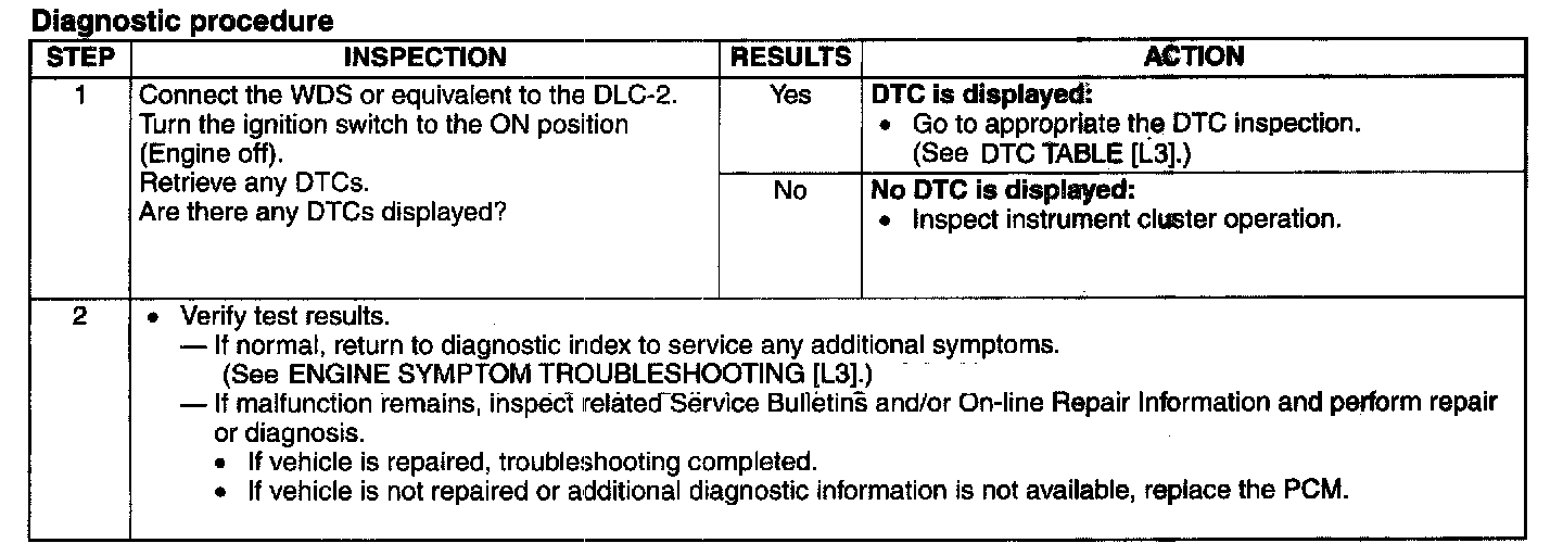 Malfunction Indicator Lamp: Testing and Inspection