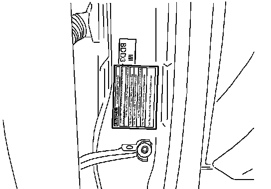 5. Place the "Authorized Modifications" label on the "A" pillar below the tear tag in the driver door jamb.