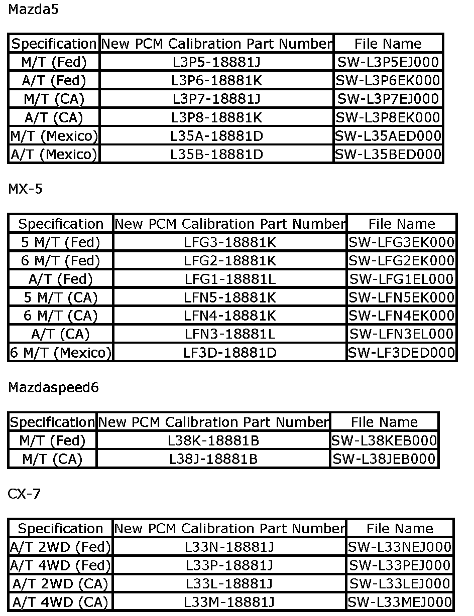 ^ Please be aware that PCM calibration part numbers and file names listed in any Service Bulletin may change due to future releases of PDS/IDS software, and additional revisions made to those calibrations for service related concerns.