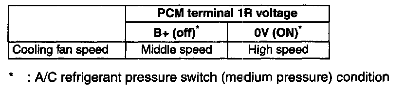 7. Verify that the cooling fan operates with following table.