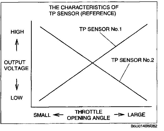 THROTTLE POSITION (TP) SENSOR INSPECTION [L3]CAUTION: This inspection procedure cannot be completed correctly if the accelerator pedal position sensor has a malfunction. Before performing this procedure, verify that any one of the DTCs (P2122, P2123, P2127, P2128, P2138) related to the accelerator pedal position sensor is not detected.