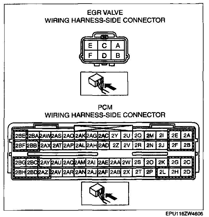 - EGR valve terminal B and PCM terminal 2AY