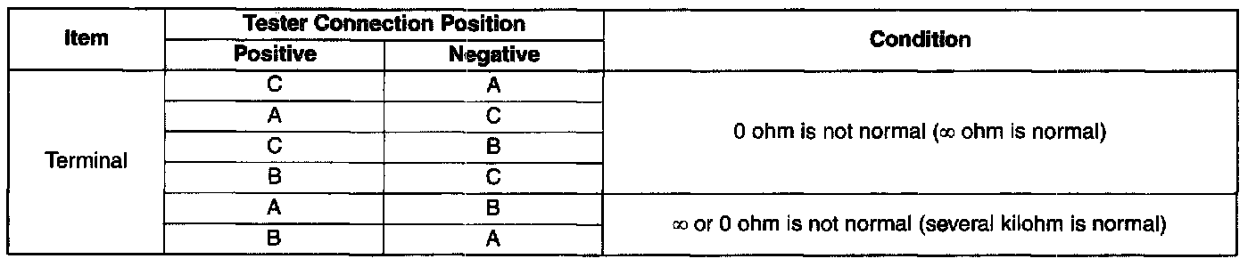2. Measure the resistance between each terminal on the ignition coil connector using an analog circuit tester.
