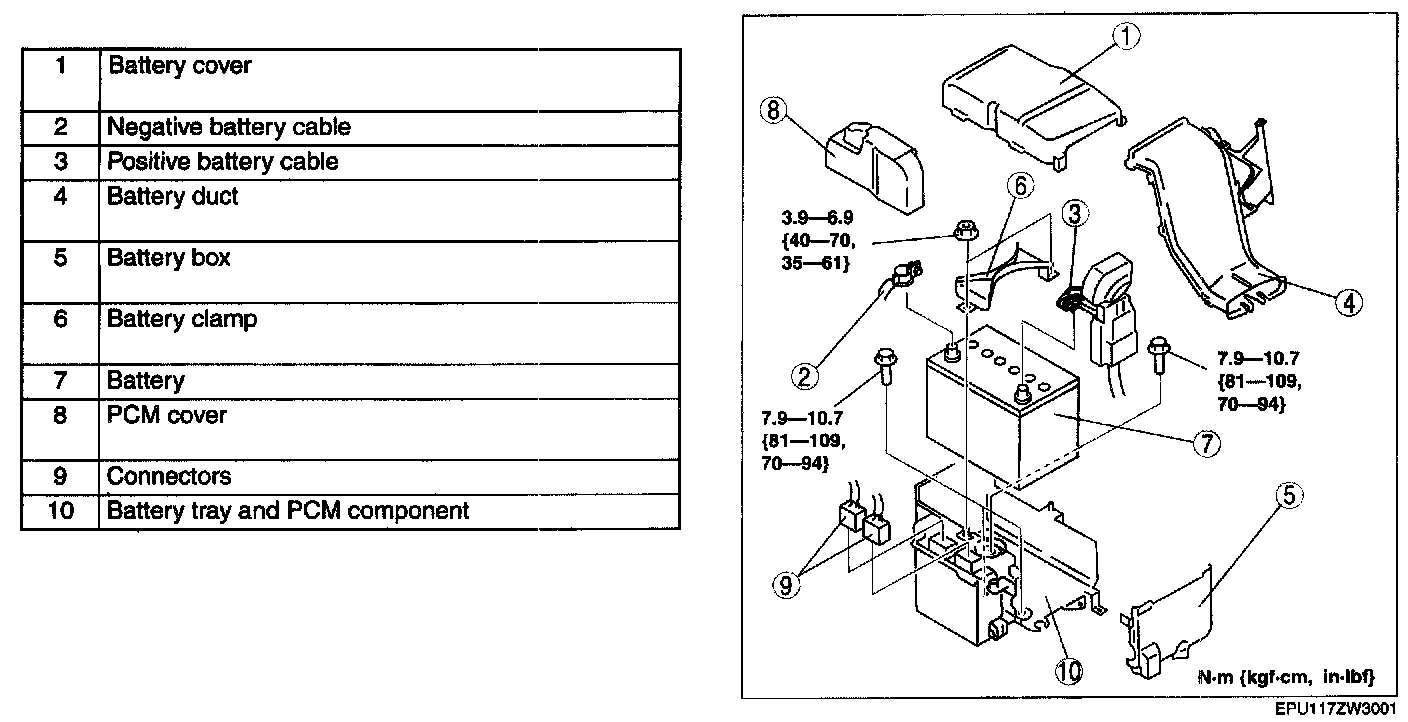 BATTERY REMOVAL/INSTALLATION [L3]1. Remove in the order indicated in the table.