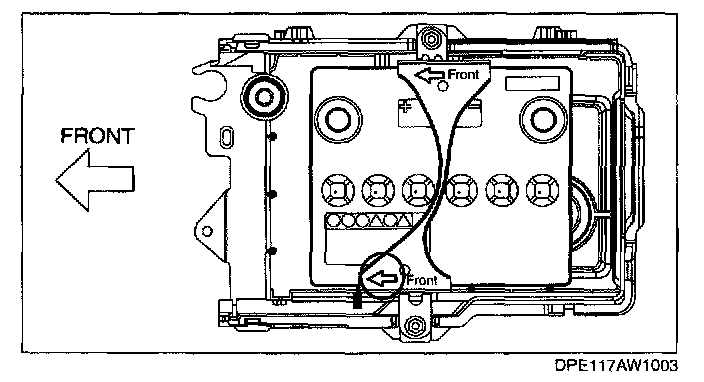 1. Assemble the battery clamp so that the arrow on it is pointed toward the front of the vehicle.