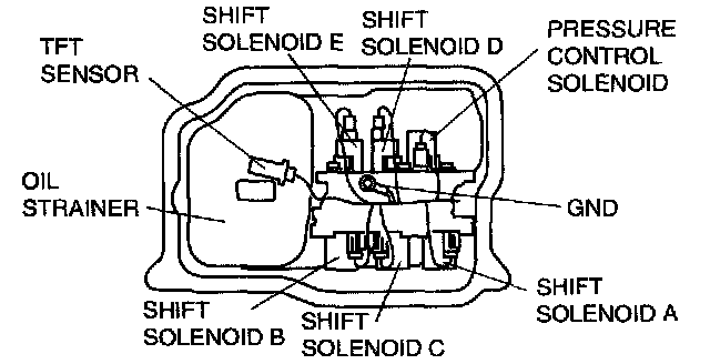 6. Disconnect the solenoid connectors; and GND.