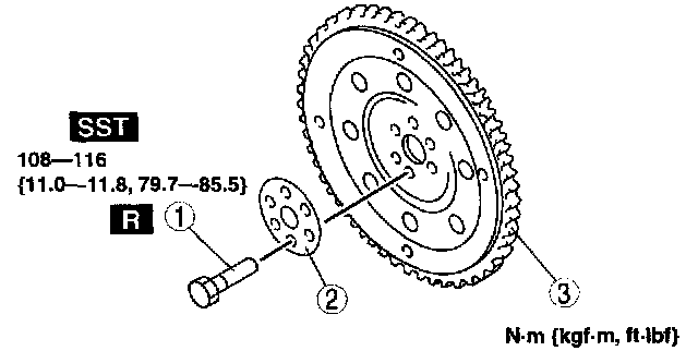108-116 Nm (11.0-11.8 kgf-m, 79.7-85.5 ft.h lbs.)