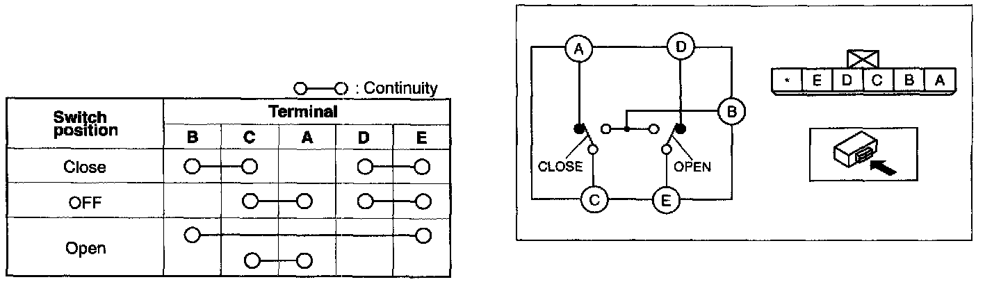 If not as indicated in the table, replace the power window subswitch.