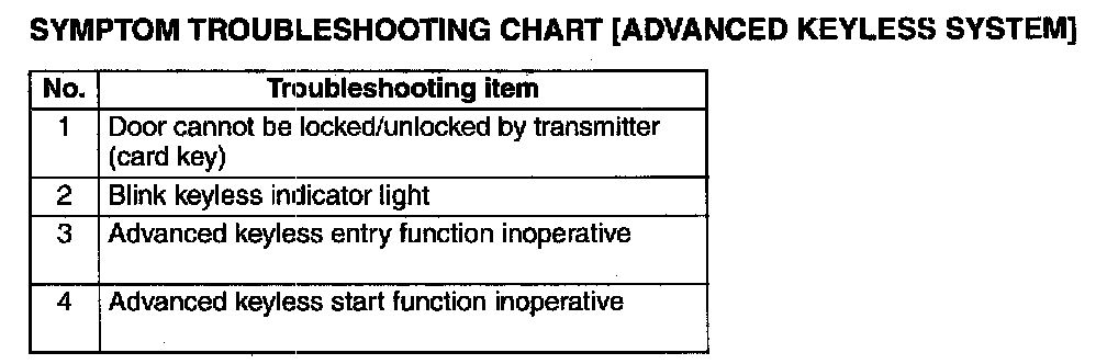 Symptom Troubleshooting Chart [Advanced Keyless System]: