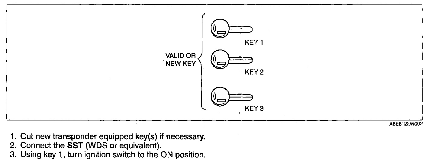 NOTE: When using the SST (WDS or equivalent) to perform "Ignition Key Code Erase" or "Customer Spare Key Programming Enable/Disable", it is necessary to obtain security access approval.