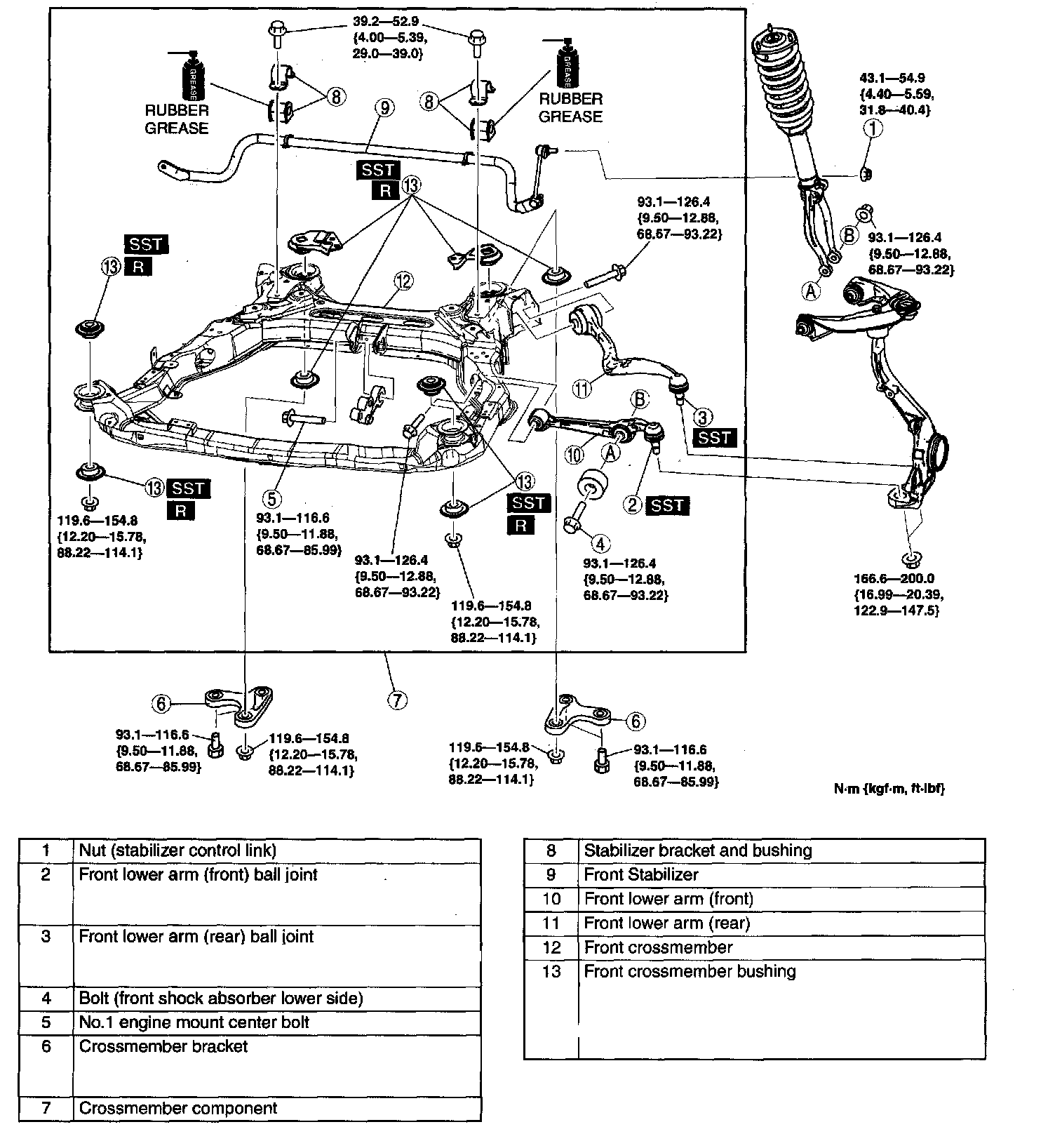 ^ Steering gear and linkage: 74.4 - 104.8 Nm (7.857 - 10.68 kgf-m, 54.88 - 77.29 ft. lbs.)