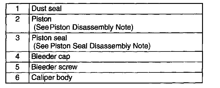 CALIPER (FRONT) DISASSEMBLY/ASSEMBLY [L3, AJ]1. Disassemble in the order indicated in the table.