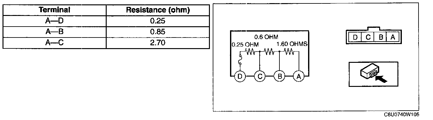 Verify that the resistance between the terminals of the resistor is as shown in the above table.