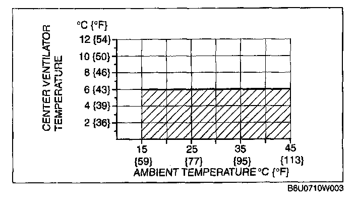 14. Verify that the intersection of the center ventilator temperature and the ambient temperature is in the shaded zone.