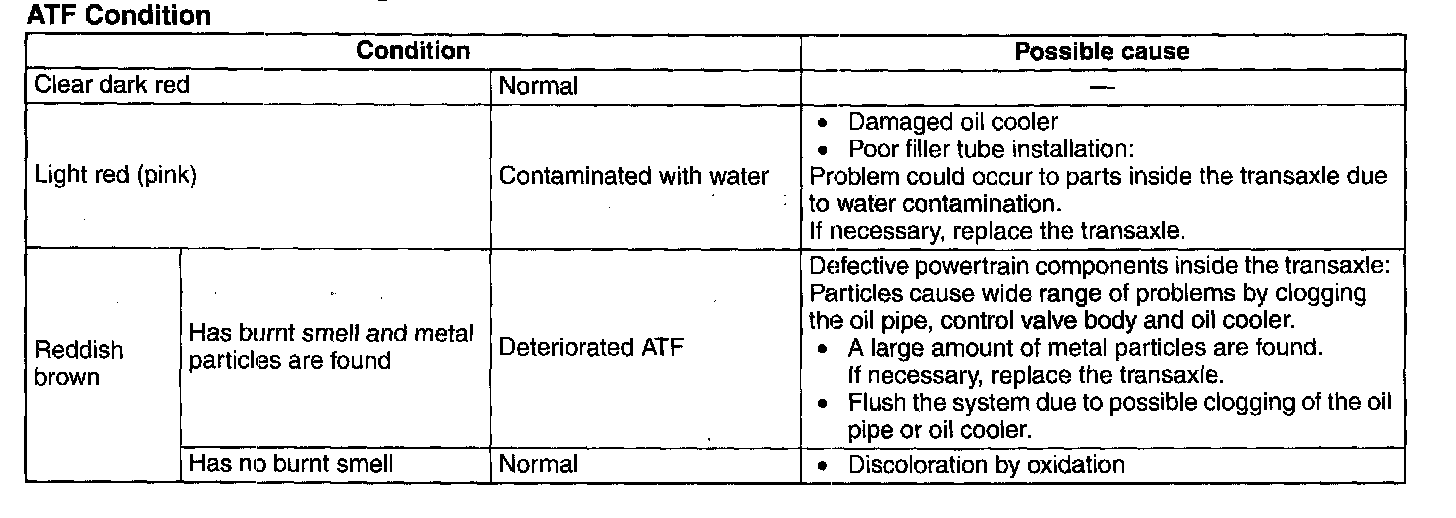 1. Inspect the ATF for the following to determine whether the transaxle should be disassembled.