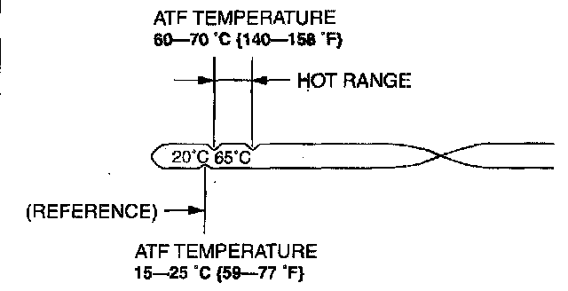7. Verify that the ATF level is in the HOT range (65°C (149°F)) while the engine is idling.