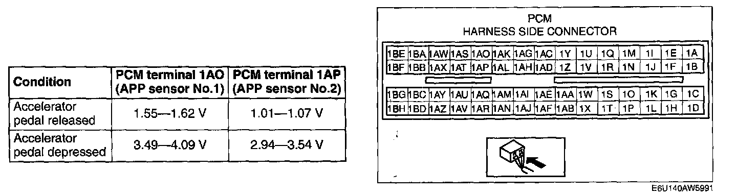 - APP sensor terminal D and PCM terminal 1AL