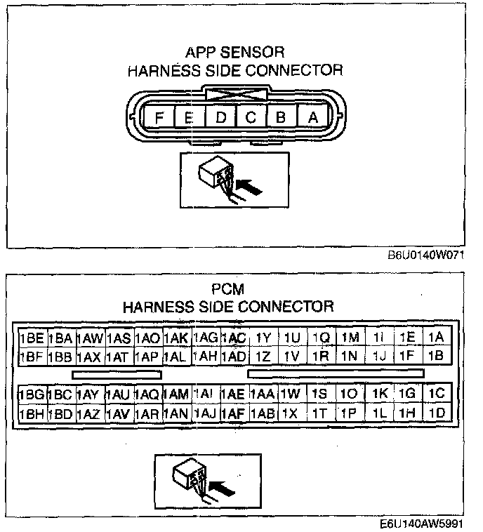 - APP sensor terminal B and PCM terminal 1AV