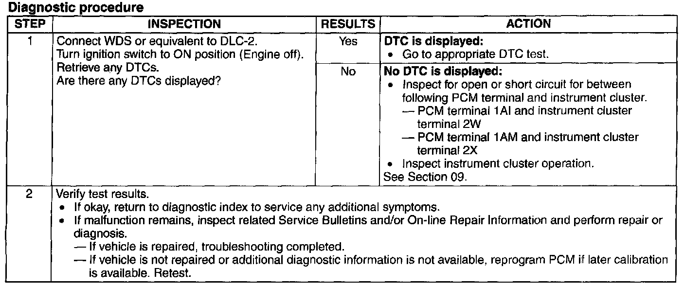 Malfunction Indicator Lamp: Testing and Inspection