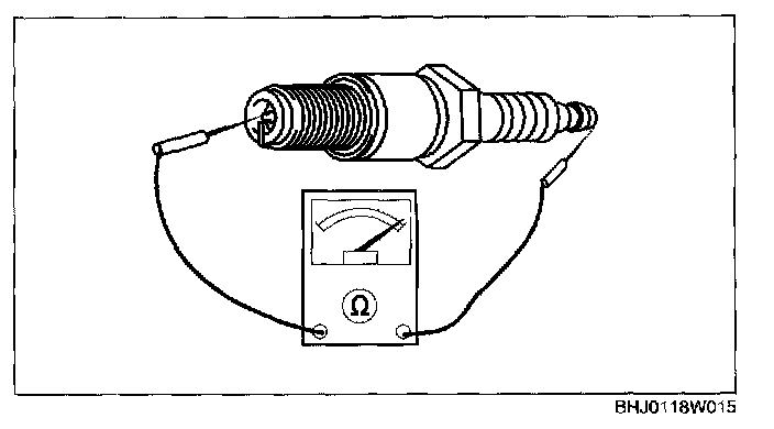 1. Measure the resistance of the spark plug using a tester as shown in the figure.