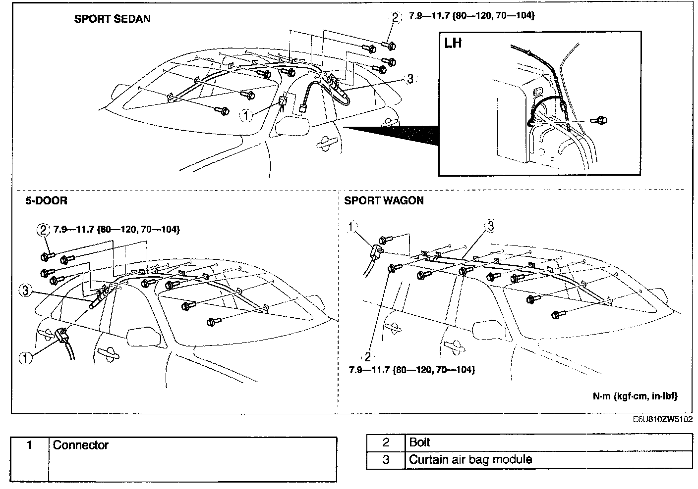 CURTAIN AIR BAG MODULE REMOVAL/INSTALLATIONWARNING: