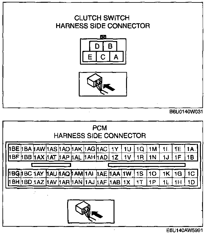 - Clutch switch terminal B and PCM terminal 1D
