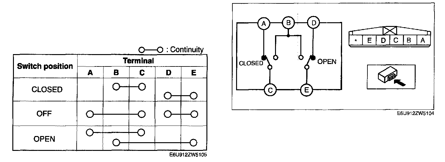 1. Inspect for continuity between the power window subswitch terminals.