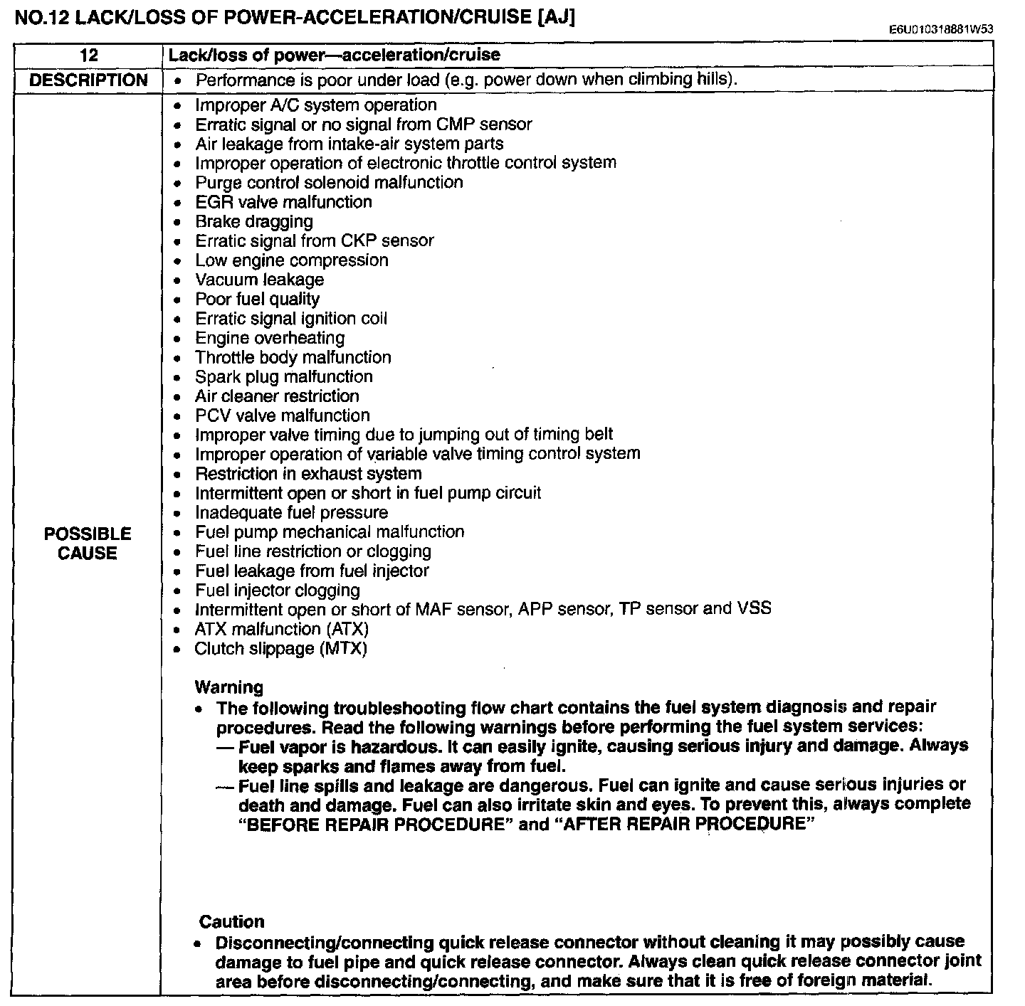 No.12 Lock/Loss of Power - Acceleration/Cruise