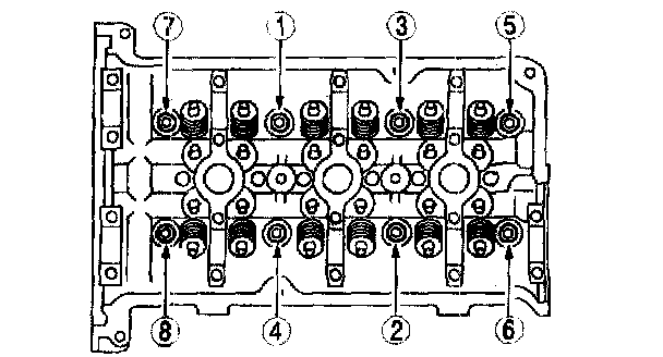 Cylinder HeadTighten the cylinder head bolts in the order shown using the following 6 steps.