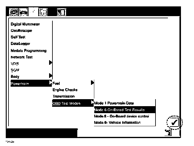 7. Select "MODE6 ON-BOARD TEST RESULTS", then press the Tick mark.