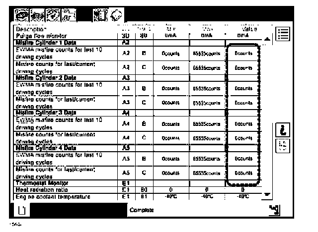 10. If there are all zeroes (0) in the value column for each cylinder, then a misfire did NOT occur in the last 10 drive cycles.