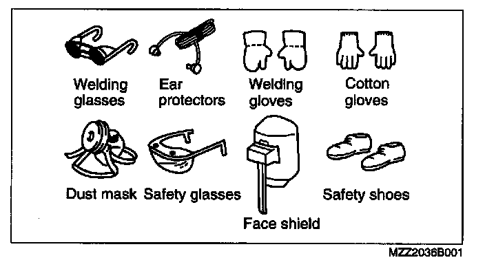 - Protective head covering and safety shoes should always be worn. Depending upon the nature of the work, gloves, safety glasses, ear protectors, face shield, etc., should also be used.