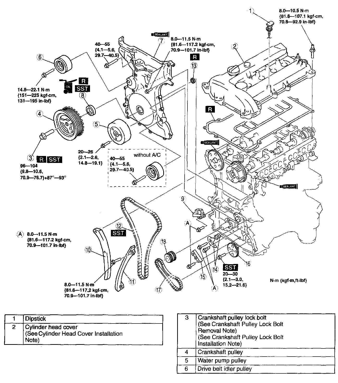 ^ Install the engine front cover within 10 minutes of applying the silicone sealant.