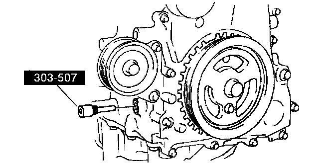3. To position the crankshaft pulley, temporarily tighten it and, using a suitable bolt (M6 X 1.0 length 25 mm - 35 mm (0.99 - 1.37 inch)), fix the crankshaft pulley to the engine front cover.