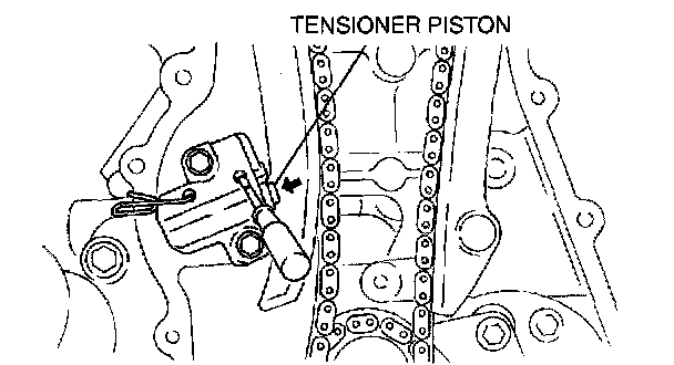 3. Remove the retaining wire or paper clip from the chain tensioner to apply tension to the timing chain.