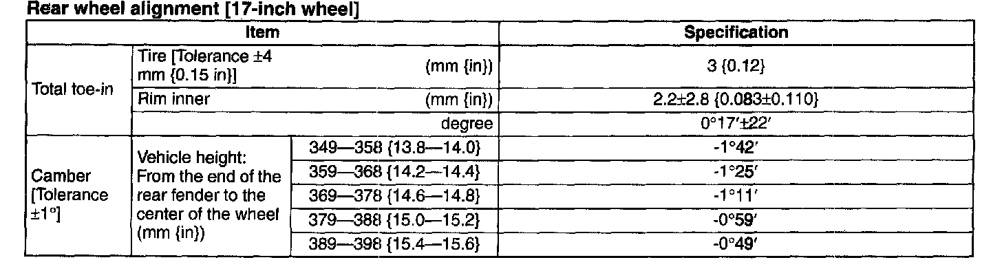 Rear wheel alignment [17-inch wheel]: