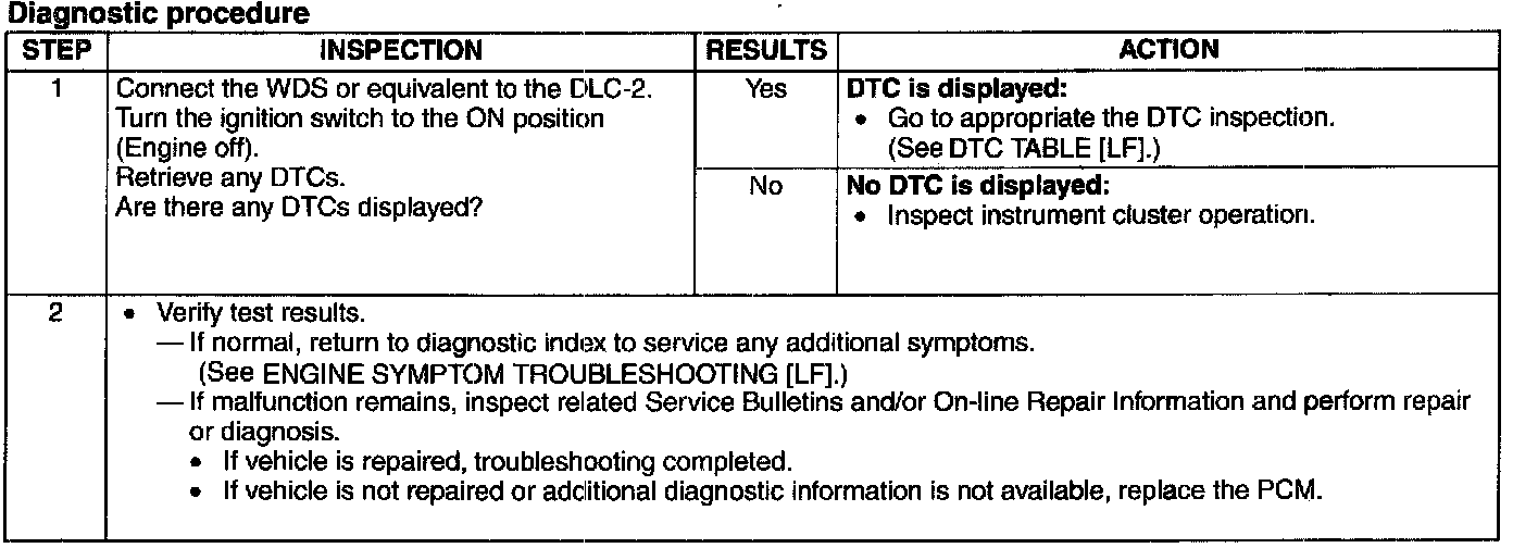 Malfunction Indicator Lamp: Testing and Inspection