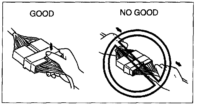 - When disconnecting connector, grasp the connectors, not the wires.