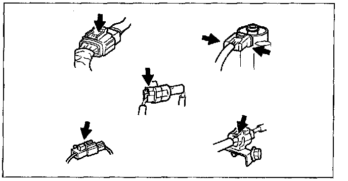 - Connectors can be disconnected by pressing or pulling the lock lever as shown.