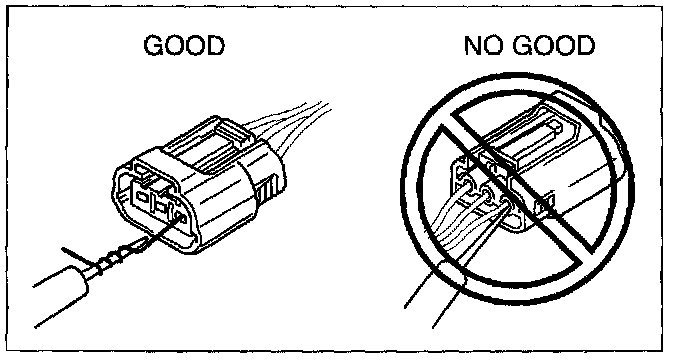 CAUTION: To prevent damage to the terminal, wrap a thin wire around the tester probe before inserting into terminal.