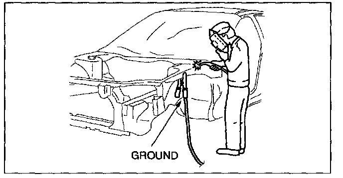 Precautions Before WeldingA vehicle has various electrical parts. To protect the parts from excessive current generated when welding, be sure to perform the following procedure.