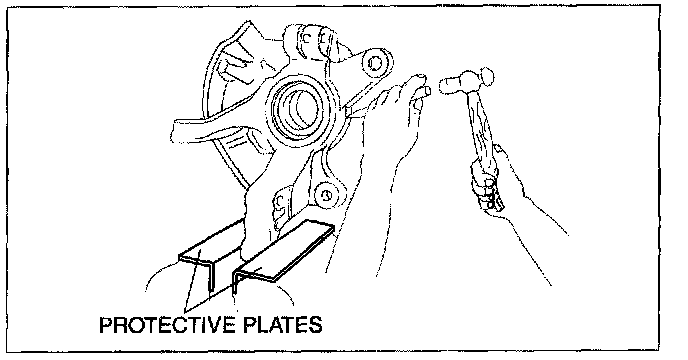 When using a vise, put protective plates in the jaws of the vise to prevent damage tc parts.