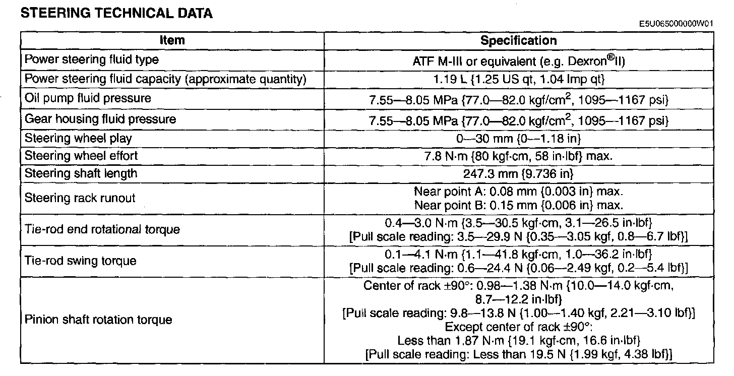 STEERING TECHNICAL DATA:
