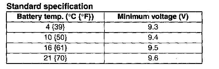 - If it is less than the specification, recharge the battery.