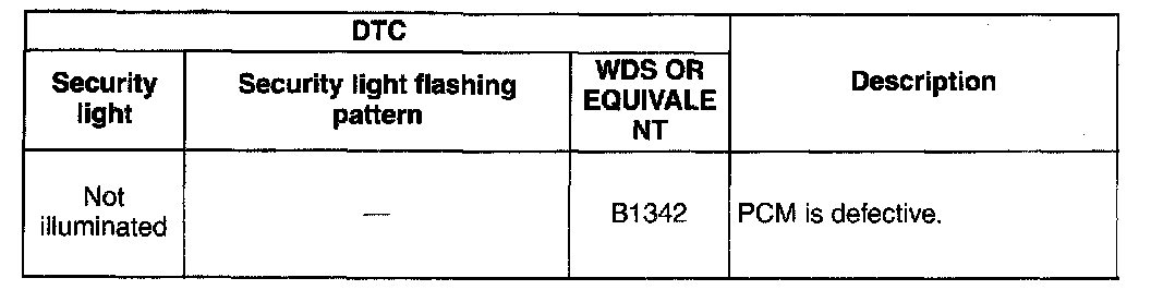 - If engine condition is normal but light stays on, inspect for continuity between the following wiring harness and body ground: security light and PCM terminal 2W (L3) or 2 (AJ). Repair or replace the wiring harness.