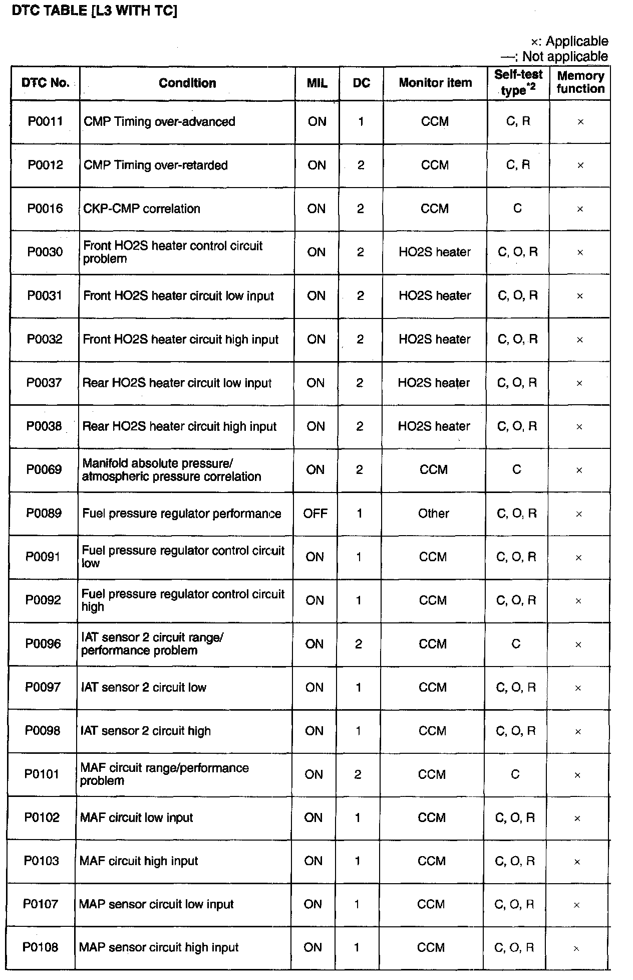 DTC P0011-P0108:
