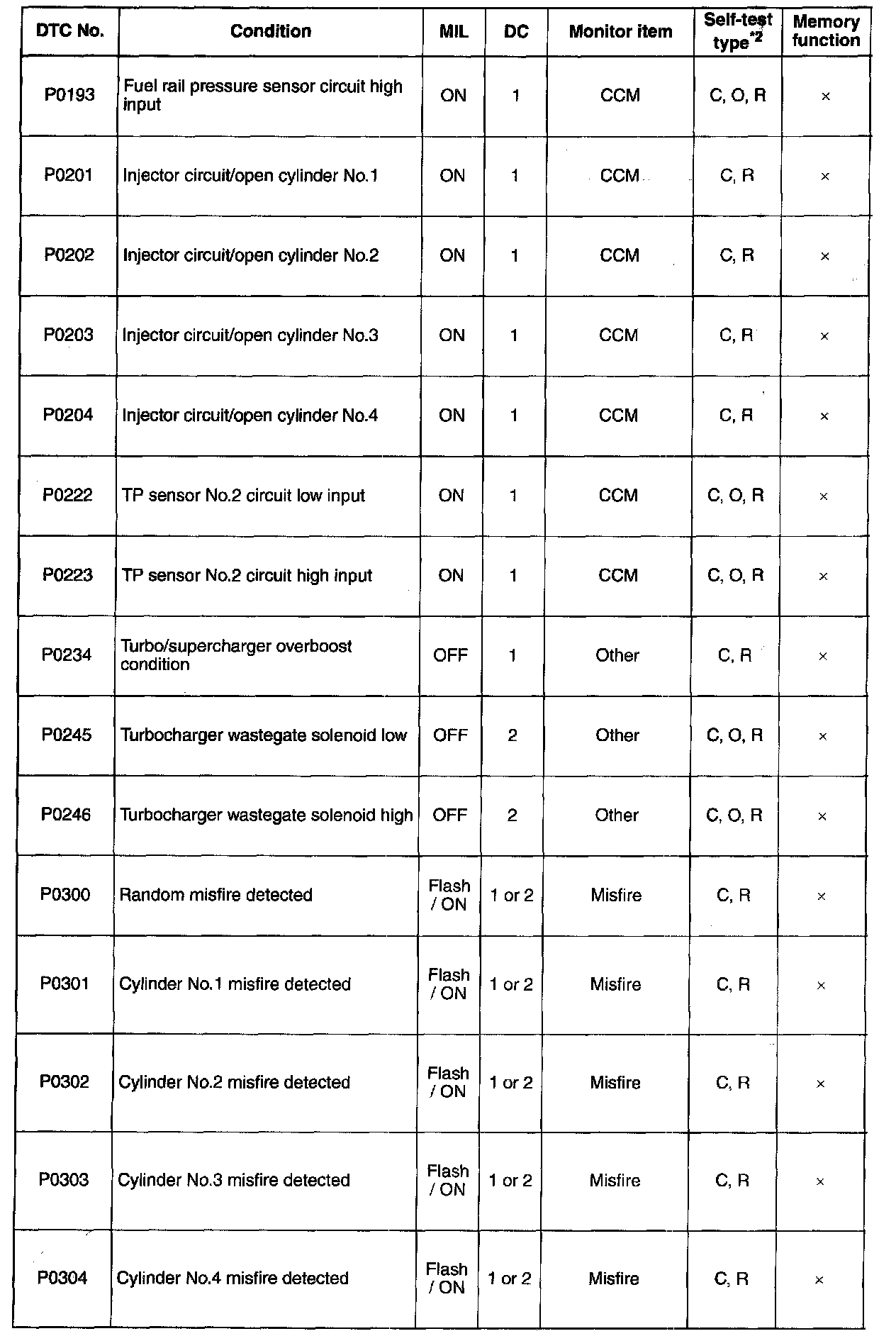 DTC P0193-P0304: