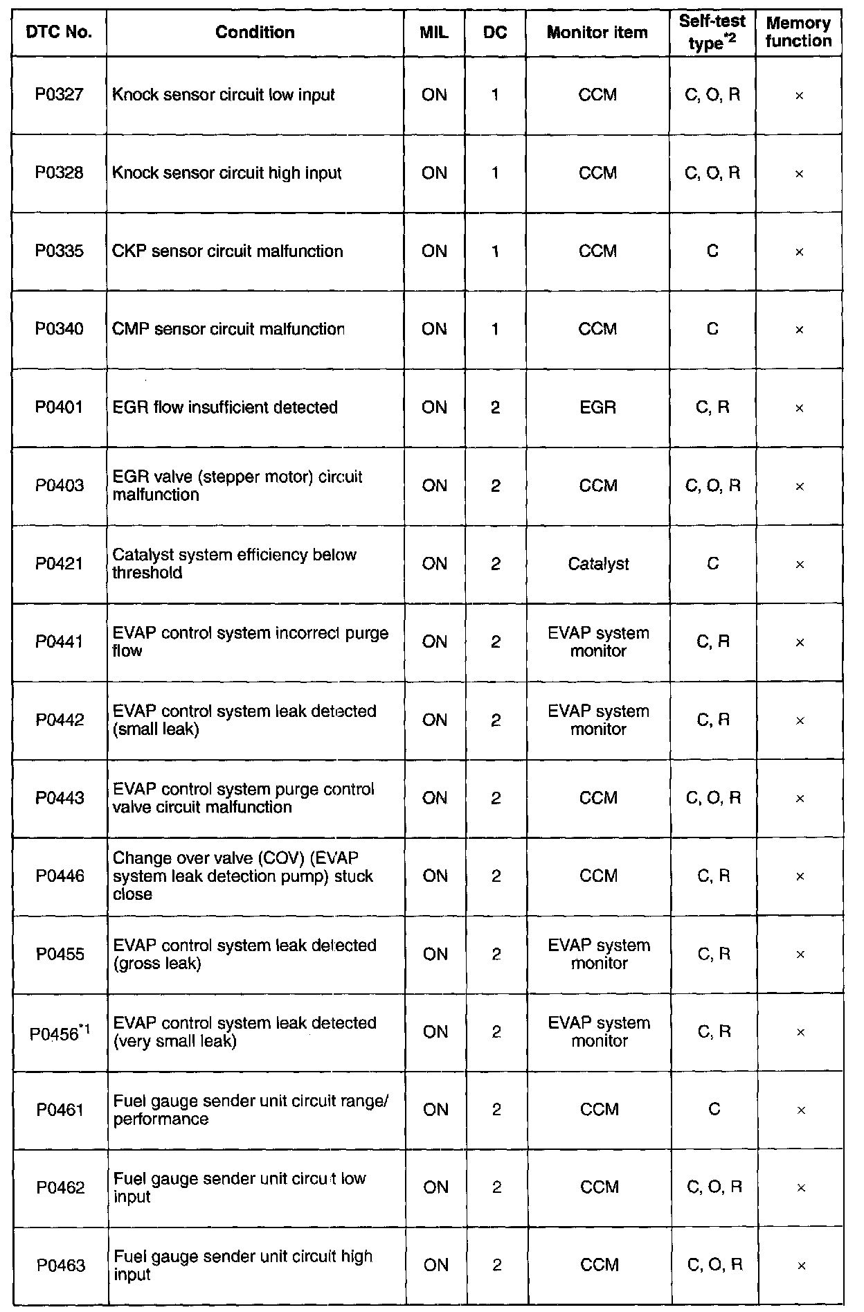 DTC P0327-P0463: