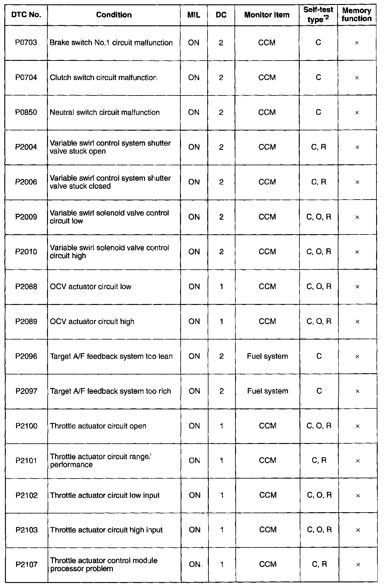 DTC P0703-P2107: