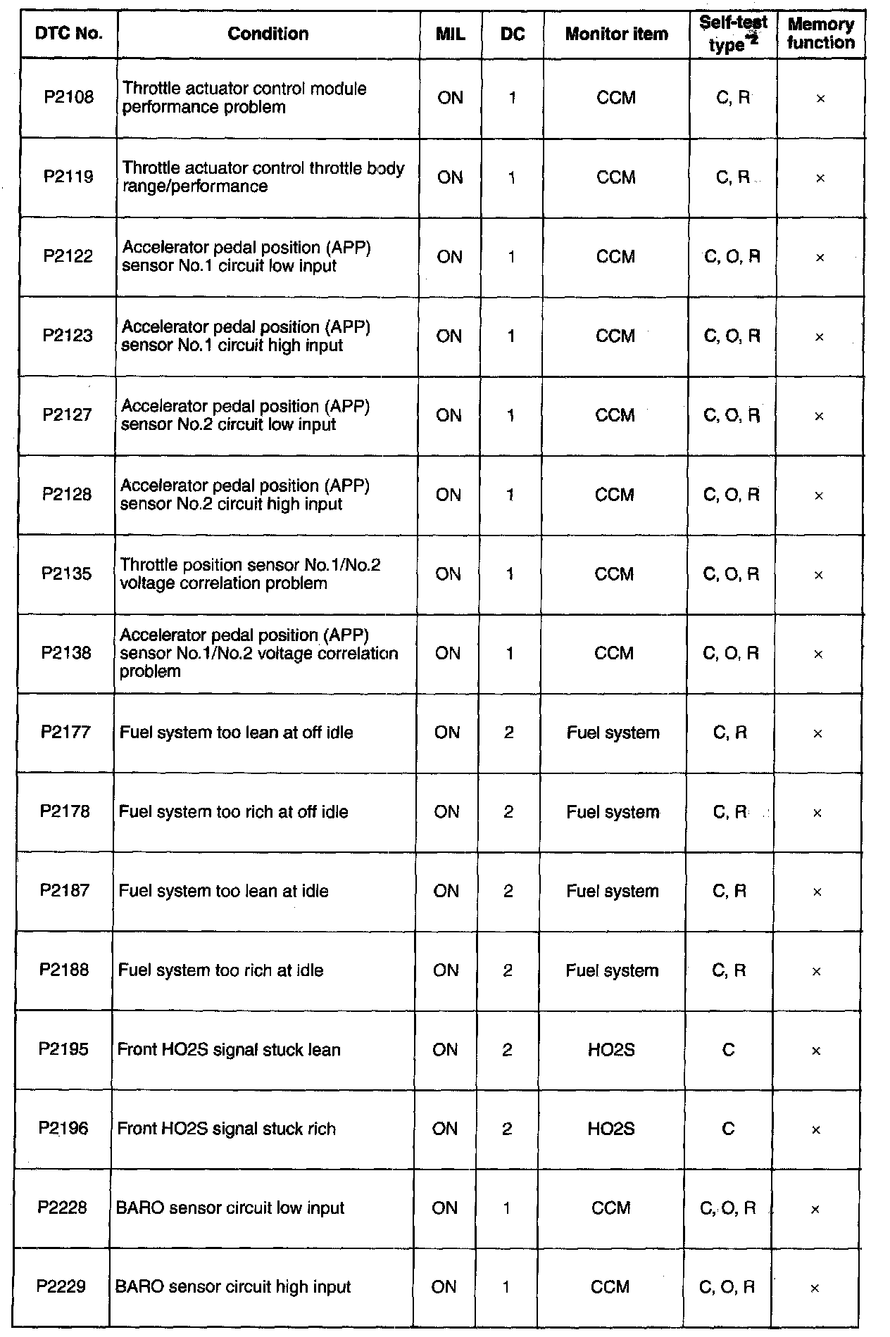 DTC P2108-P2229: